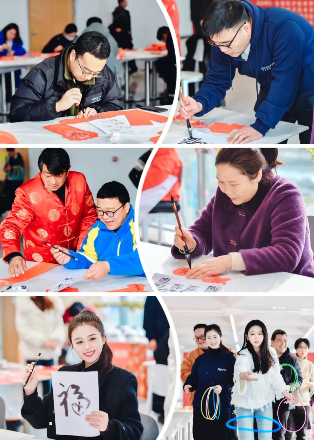 长桌排开,笔墨铺就。活动现场,中联即送党支部书记贾芯、专业书法家和员工们饱蘸浓墨、提笔挥毫。既有辞旧迎新的美好愿景,也有诙谐幽默的妙语妙对。一幅幅精彩的作品,一张张喜庆的“福”字,不仅让大家感受了中国书法文化的魅力,更为即将来临的龙年春节营造出浓浓的喜庆氛围。此外,活动现场还精心准备了自制梅花糕和福气套圈,让大家一饱口“福”的同时,收获满满。