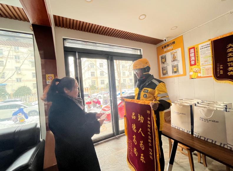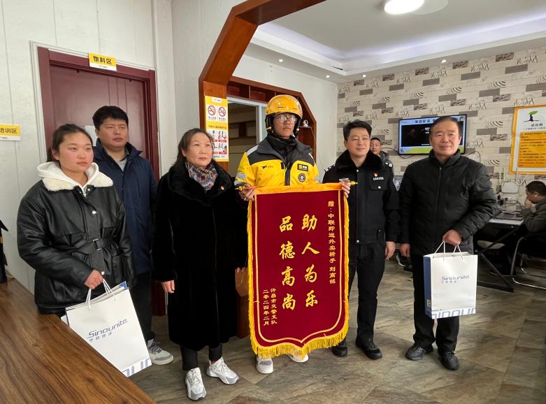 中联即送党支部书记贾芯代表公司对刘高铭的事迹进行表彰,送上500元奖金作为奖励,并发放20套防寒装备。她表示,公司将对刘高铭的义举给予全公司通报表扬,并号召全体员工向他学习。希望这种宝贵的精神在团队中继续传递下去,用实际行动诠释中联人的责任与担当;同时不断精进服务质量,共同树立中联即送优质服务口碑。