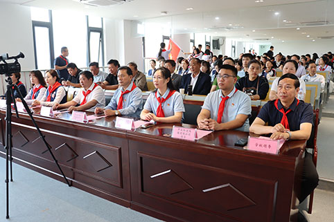 活动伊始,是盐城市特殊教育学校的新少先队员入队仪式,党员们受邀为新入队的少先队员佩戴上鲜艳的红领巾,并观看了宣誓仪式。
