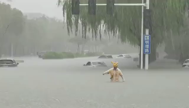 河南全境遭遇暴雨极端天气,“烟花”台风在东南季风和副热带高压的吹拂下,往河南输送了巨量的水汽,再加上太行山和伏牛山的冷凝效应,所以河南在一天内就承受了年降水量的三分之一。河南多个城市:郑州、洛阳、许昌、漯河、平顶山、新乡等地均出现严重积水,尤其郑州和新乡更是遭遇了历史最强暴雨,由于遭遇罕见持续强降雨,郑州多处工程出现险情,铁路、公路及民航交通受到严重影响。新乡市区出现河水倒灌,导致部分路段积水严重,多个村庄处在一片汪洋中。