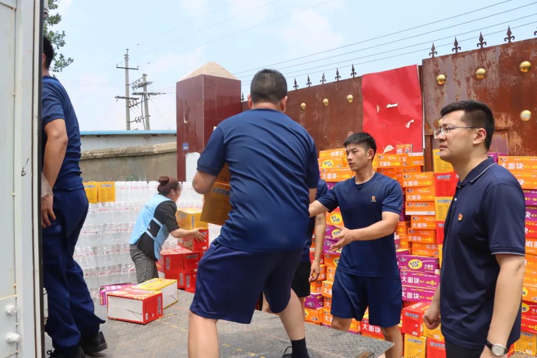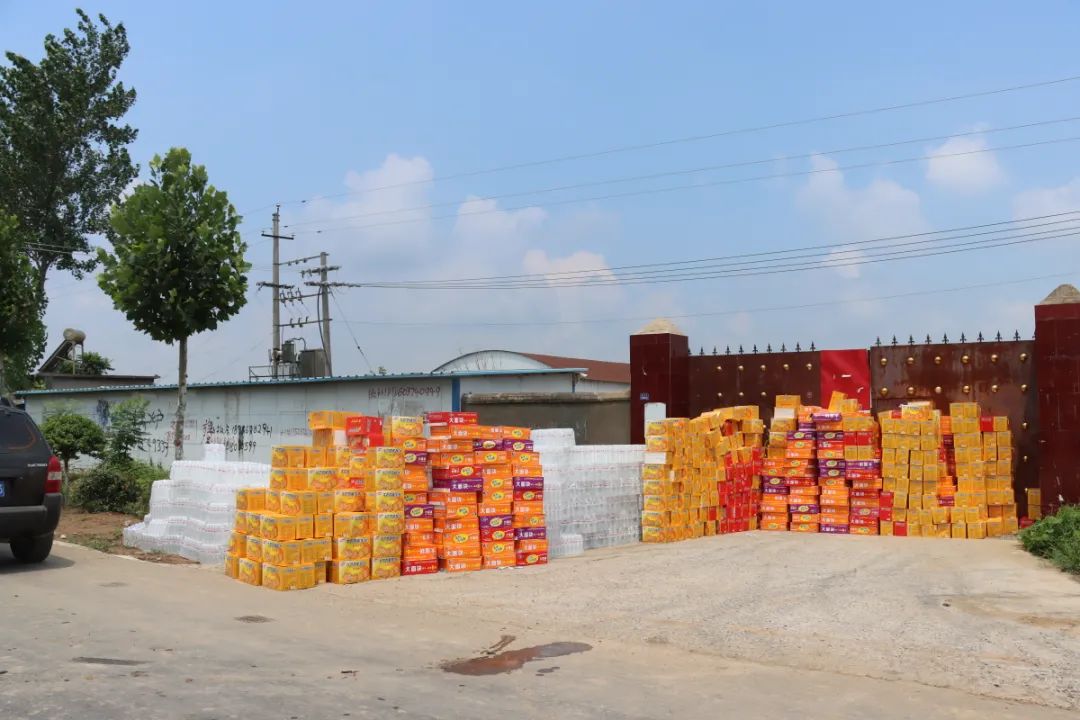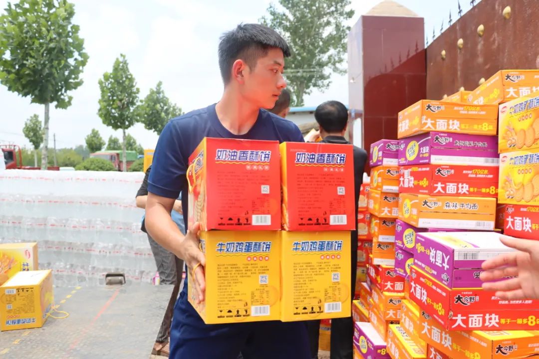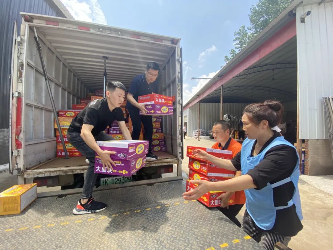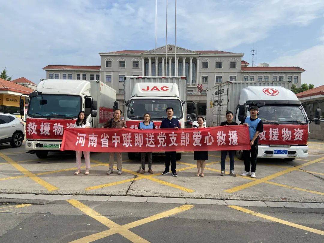 受中联即送董事长宋一的委托,在东大街道党工委韩扬书记与中联即送党支部贾芯书记的共同带领下,中联即送职工党员前往灾情严重的新乡市和长葛市,向新乡和长葛灾区捐赠共计矿泉水2500箱,方便面600箱,面包400箱,饼干800箱,夏凉被1500条,手机防水袋300个。