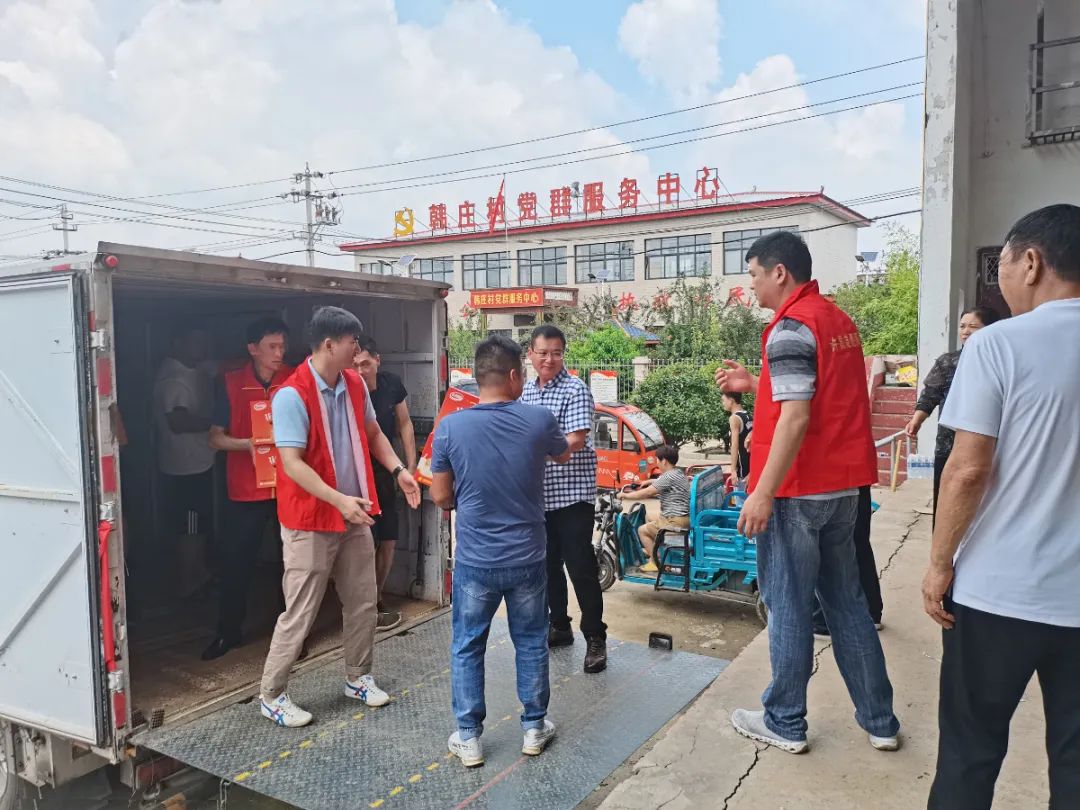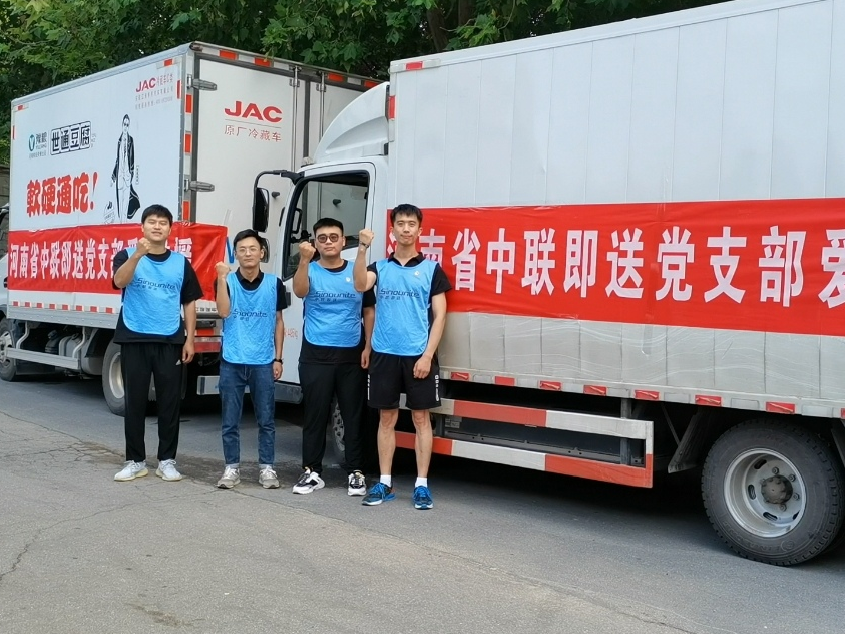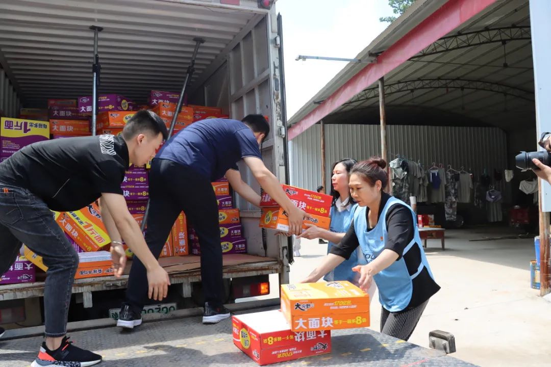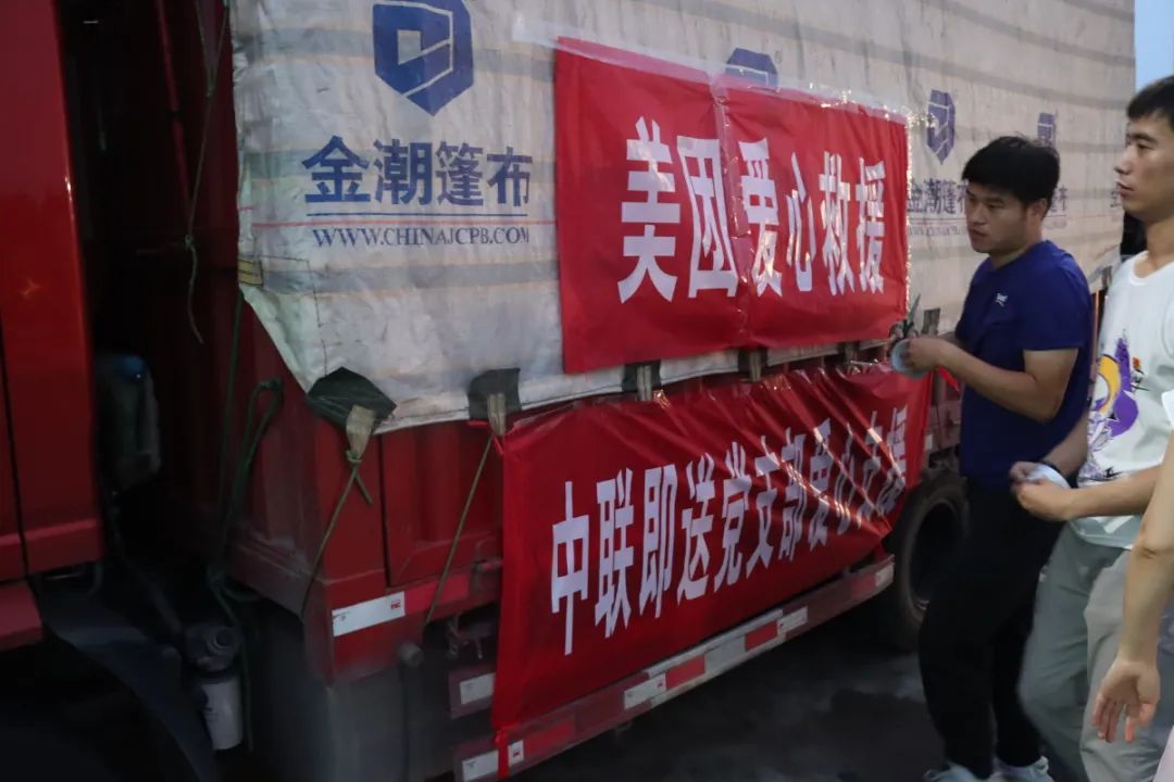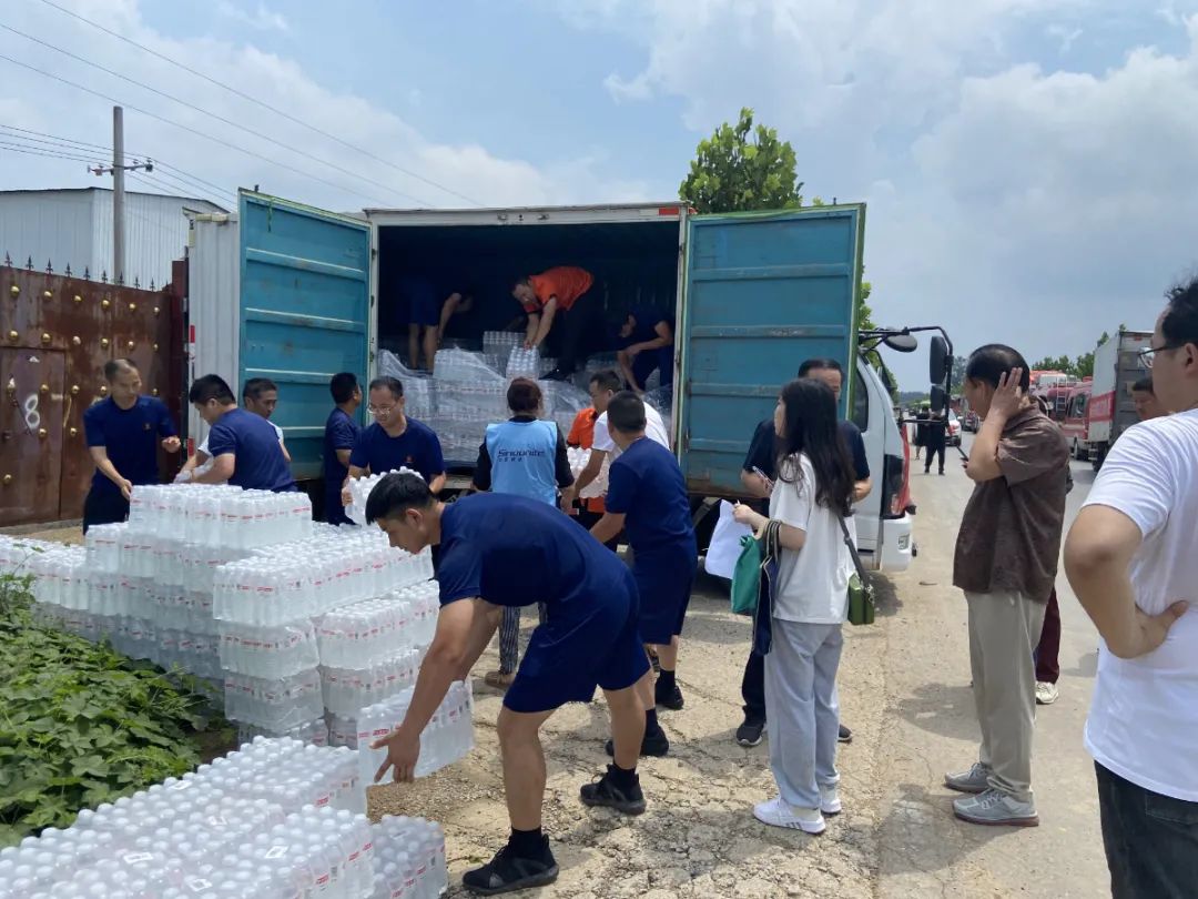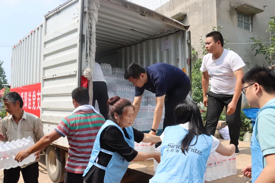 受中联即送董事长宋一的委托,在东大街道党工委韩扬书记与中联即送党支部贾芯书记的共同带领下,中联即送职工党员前往灾情严重的新乡市和长葛市,向新乡和长葛灾区捐赠共计矿泉水2500箱,方便面600箱,面包400箱,饼干800箱,夏凉被1500条,手机防水袋300个。