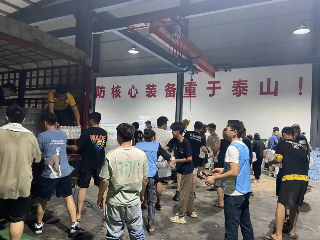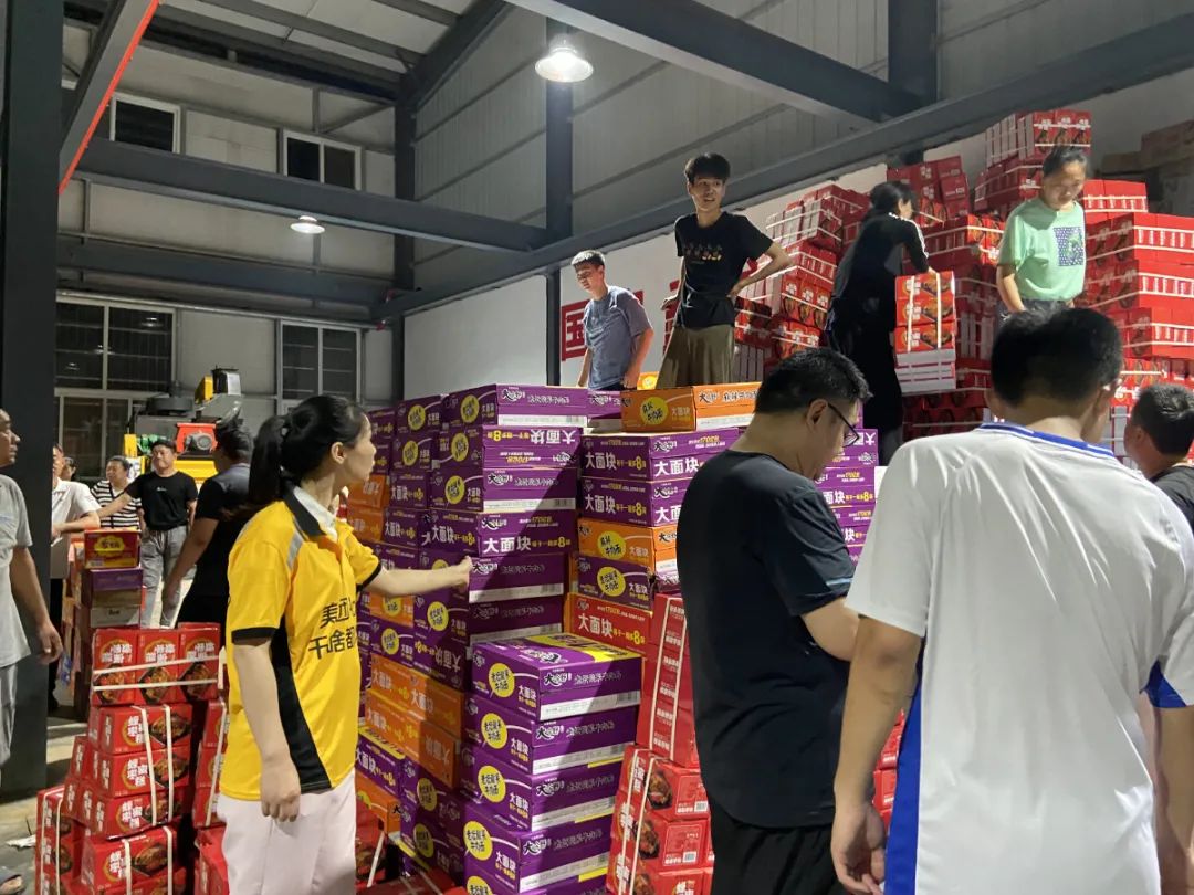 在中联即送党支部贾书记的带领下,中联职工将捐赠的矿泉水、夏凉被、方便面等物资运送到卫辉慈善总会仓库直至凌晨3点,希望能尽绵薄之力帮助受灾群众。