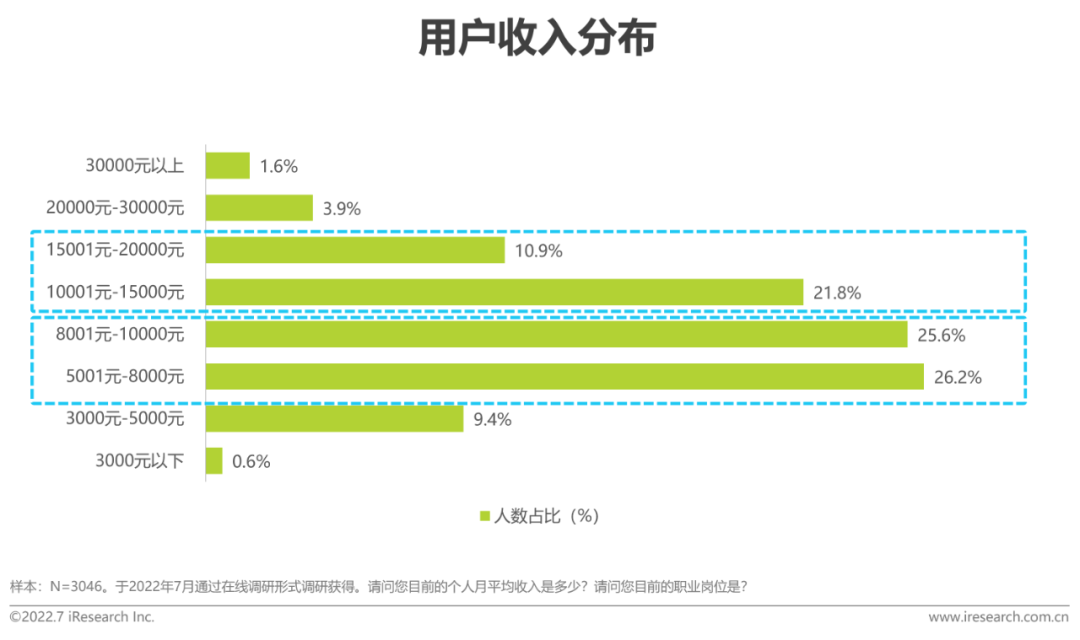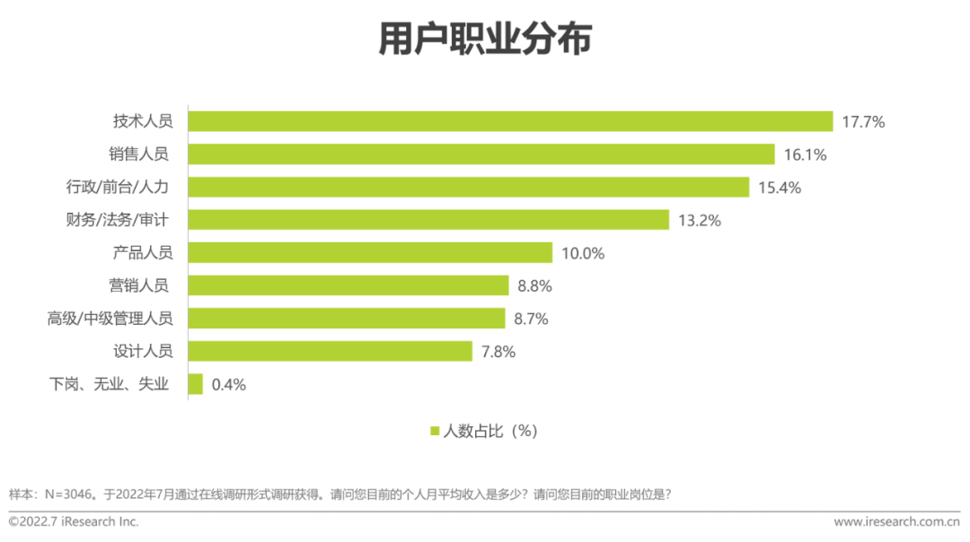 用户主要为较高收入及高收入群体,前后端职业皆有涉及