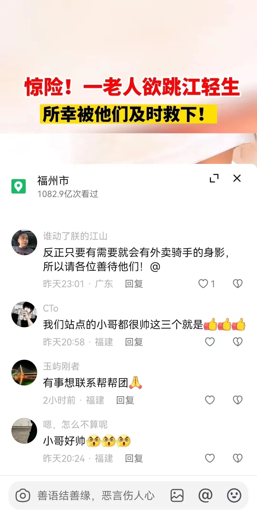 三人救人事迹被上传网络后,引发网友点赞。