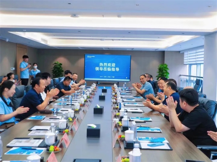 参观结束后,在中联即送 8 楼一号会议室举行座谈会,政企代表团首先祝贺中联即送在盐城的发展与成就,同时对其敢想敢干、锐意进取的精神态度表示赞赏,并提出一些建设性的发展建议。