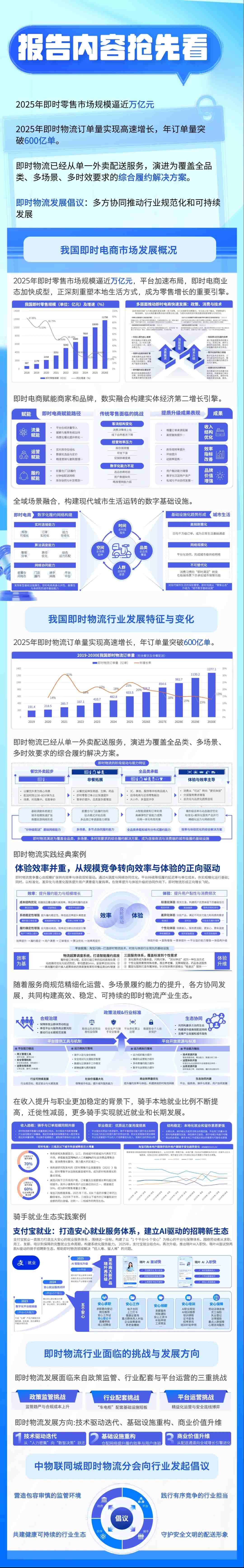 中物联同城即时物流分会重磅发布《2026中国即时物流行业发展报告》。报告从即时电商市场发展概况、即时物流行业发展特征与变化、即时物流行业面临的挑战与发展方向进行全面分析,为政策制定者、行业从业者及社会各界提供参考,共同绘就即时物流多维驱动、长期共赢的未来新图景。